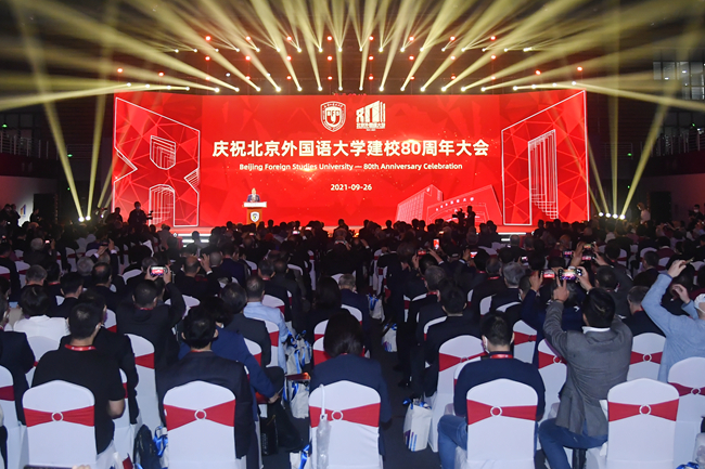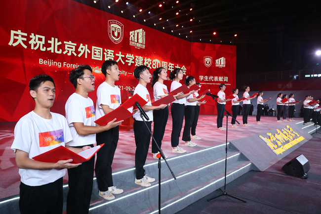 八十载育人桃李天下,正青春北外再启征程。北外生于民族救亡的烽火,成于新中国创业的磨砺,兴于改革开放的春天,也将盛于中华民族伟大复兴的新时代。举棹扬帆,长歌奋进,北外将以人才强校、学术兴校、全球立校战略为引领,加快建设世界一流外国语大学。北外将以自己的战略思考和有力行动,在推动构建人类命运共同体的进程中发出北外声音,更好地把世界介绍给中国,把中国介绍给世界,谱写文明交流互鉴的北外华章!