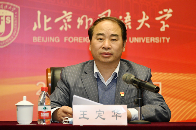 王定华作了题为“学党史 迎双庆,开启党建与事业发展新局面”的动员讲话,从党史学习教育“怎么看”“怎么办”“怎么干”三个方面就继续做好北外党史学习教育工作进行了部署。